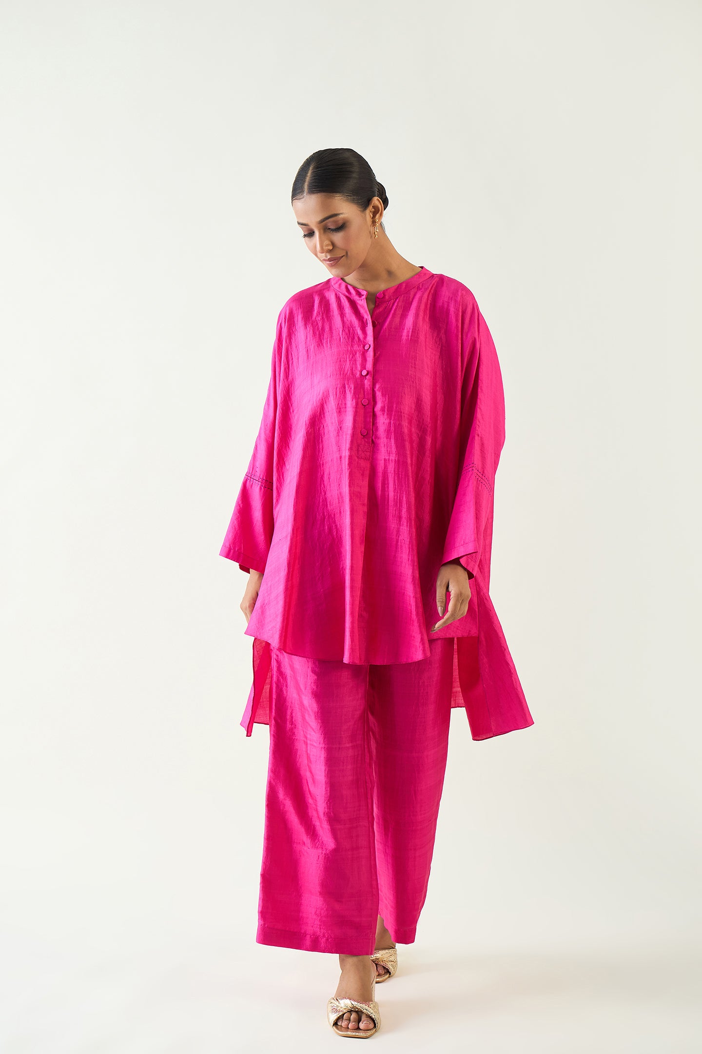IRA: SILK KIMONO TUNIC SET- HOT PINK