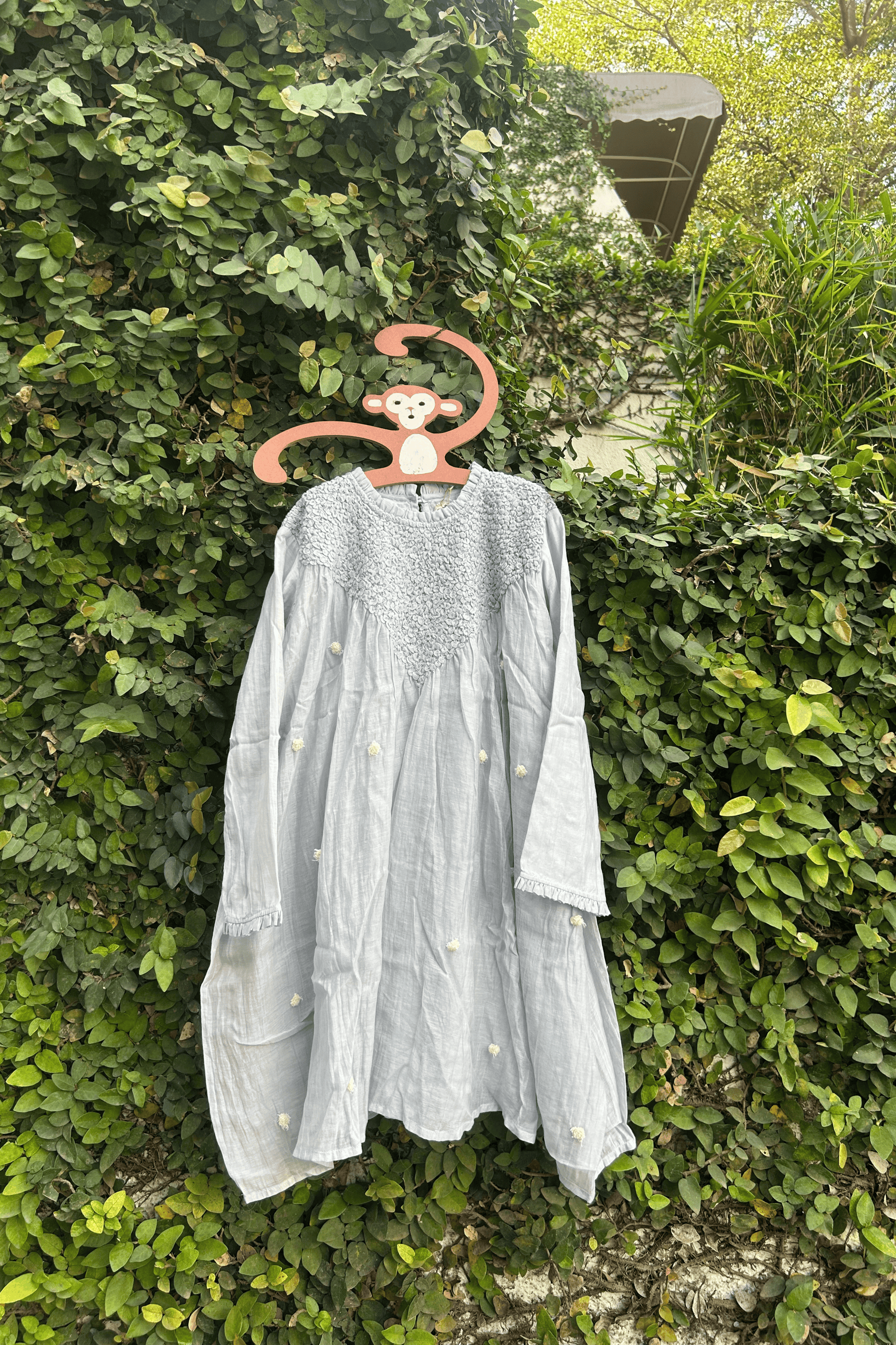 A breezy mul chanderi checked dress detailed with smocking. Soft pastels, airy comfort, and an easy everyday style made for little moments and big smiles.