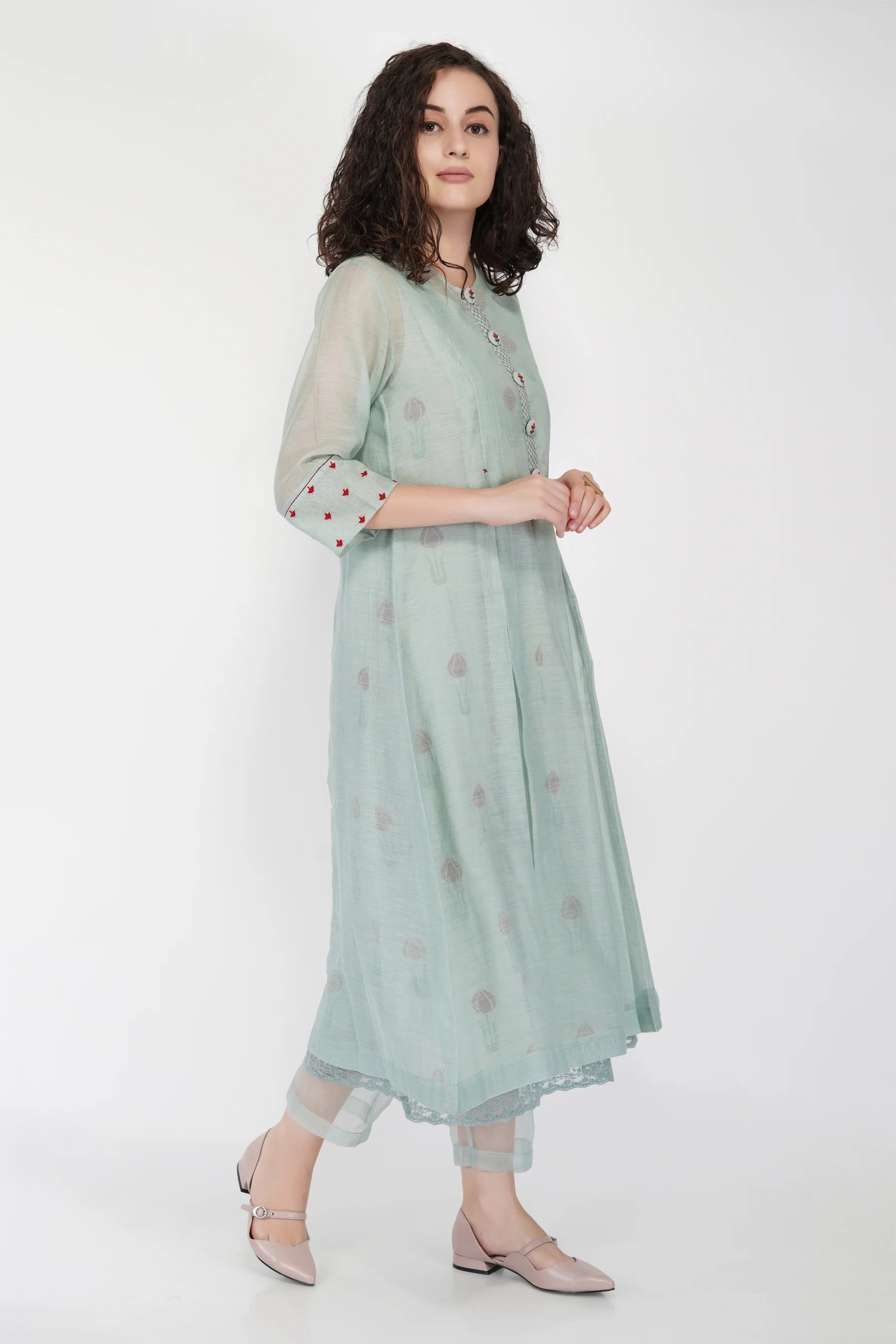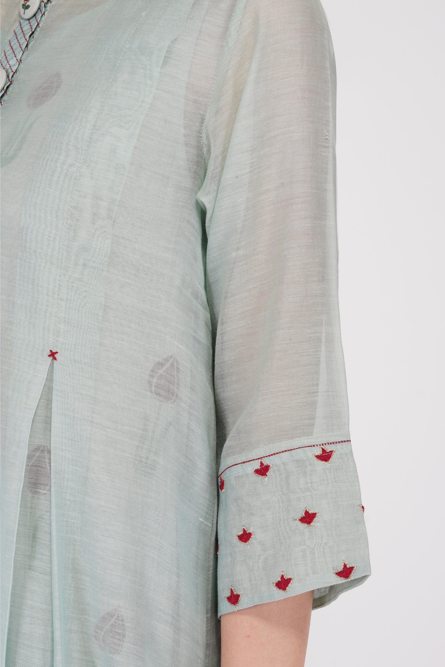 SAAWAN- SAGE GREEN BOX PLEAT WITH BUTTON EMBROIDERY